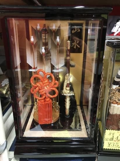 ミニサイズ破魔弓飾り。 刀付き。 お買い得な安心のガラス製品です。 高さ44センチ。どこにでも置けます。