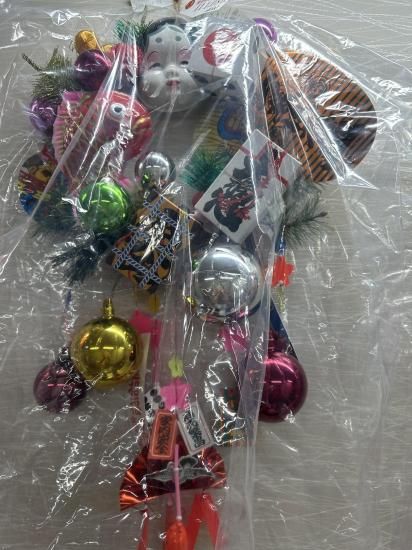 新聞にも紹介された姫路駅南人形のかきうちが考案し、商品化された今の時代に合わせた 現代版松飾りです。 1つずつ手作りで仕上げます。 松に縁起ものを吊り下げ、子供の健やかな成長を願う播磨の風習「松飾り」を手軽にとりいれています。 松飾りは初めて正月を迎える子や孫に祖父母などが破魔弓や羽子板などと共に贈ります。 松の木にサイコロや、金の玉、立体感のある張子の鯛などをつけて正月を華やかに彩ります。 サイコロは芽(目)が出るように、金の玉は 顔が写ります。 円満になり、宝をもてるように、など装飾の1つ1つに験かつぎの意味が込められています。